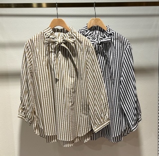 春先まで活躍する、さらっとした生地のブラウス☺︎ ニットのインナーとしてレイヤードコーデを楽しめます♪