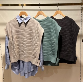 春まで使える便利なニットベスト★ ニットやブラウスに重ねるだけで、グッとオシャレなコーディネートになります♪