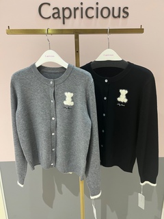 毎年大人気のシャイベアシリーズのカーディガン入荷!今年はホワイトファーにキラキラビジューついてます! グレー、ブラック 手洗い可 レーヨン50% ナイロン28% ポリエステル22%
