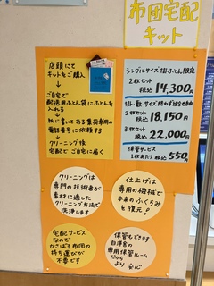 宅配便でお好きなタイミングでクリーニングの集荷、受取りができる「布団宅配キット」販売中です。気づかないうちに汗を吸っている布団も大型洗濯機で丸洗いすればスッキリ、リフレッシュ! キットは店頭で販売 お気軽にお声がけください