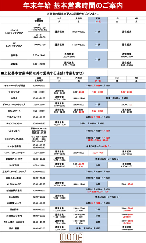 MONA新浦安は、新年は1/2(金)より営業いたします。