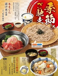 一部の店舗では信州の地酒と郷土料理をご用意。お一人でも気軽に利用しやすい店内では、手作りのお料理にそば焼酎のそば湯割りや地酒の飲み比べなどそじ坊ならではの楽しみ方をご提案しております。 また、四季に合わせて旬の食材を使用した季節のメニューも提供しておりその時々の季節の味をご賞味いただけます。