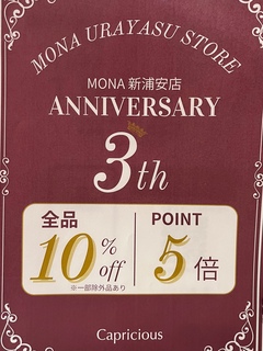 カプリシャス3th anniversaryフェア! 早いもので今年で3周年を迎えました。 日頃の感謝を込めまして 10%オフ(一部除外品あり) カプリシャスポイント5倍キャンペーン を開催いたします! ステキなニットやコート多数取り揃えてございます。 ぜひカプリシャスにお立ち寄りくださいませ。