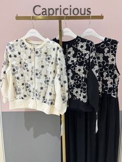 刺繍がステキなワンピースとジャケット。単品で他のカーディガンと合わせてもいいのでご旅行にいいですね! オフ、ブラック ポリエステル70% 麻30% 手洗い可