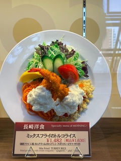長崎洋食の定番です! (エビフライ1尾、カニクリームコロッケ1ヶ、ナポリタン、ピラフ、サラダ)