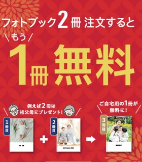 1月31日までに2冊ご注文いただいた方限定! 3冊目が無料になるキャンペーン実施中です 同じもの3冊のご注文でも! それぞれ異なった中身のものでもOK! 詳しくは下部の「詳しくはこちら」をご確認ください 是非店頭またはネットよりご注文お待ちしております 1冊目2冊目ご注文期間:1月31日まで 3冊目ご注文期間:2月15日まで ※1、2冊目にご注文いただくフォトブックのサイズにより、無料になるフォトブックが異なります