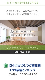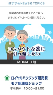 コンパクトな家に引っ越したい 「子どもが巣立って、家が広い」 「お庭の手入れが、おっくうになってきた」 「シニアの住み替え先はどこがいいかな?」 「空いた家のことも一緒に相談したい」 「スモールダウンして駅近のマンションに引っ越したい」 そんなご相談、モナ1階のロイヤルハウジングで承ります。 賃貸・売買の専門スタッフ+シニアホームアドバイザーが お客様にご提案いたします。 年末年始を除き年中無休、21時まで営業。 お気軽にご相談ください。