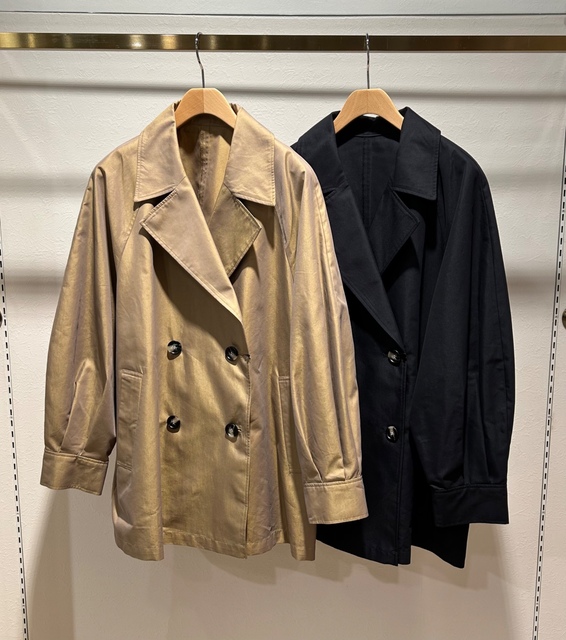 光沢が綺麗なシャンブレー素材のショートトレンチ★ 「ロング丈のトレンチコートだとサイズが難しい…」という方にもおススメです♪