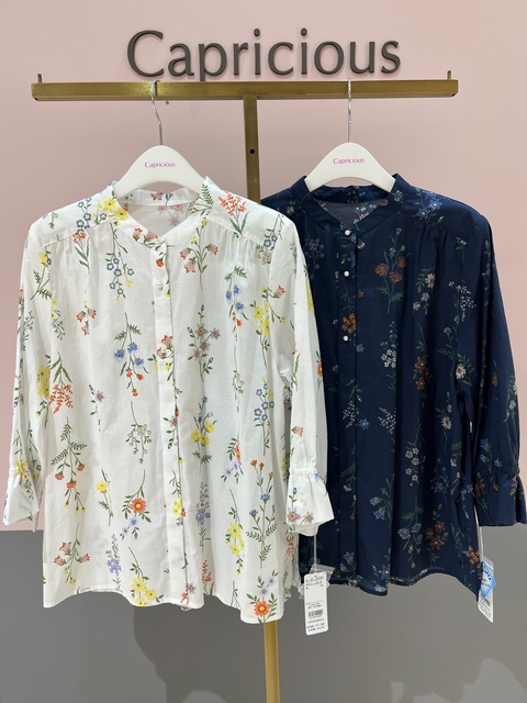 毎年大人気の小花柄綿ブラウス入荷しました!七分袖なので秋まで大活躍! オフ、ネイビー 綿100%ですが手洗いしていただけたらシワも気にならないです。
